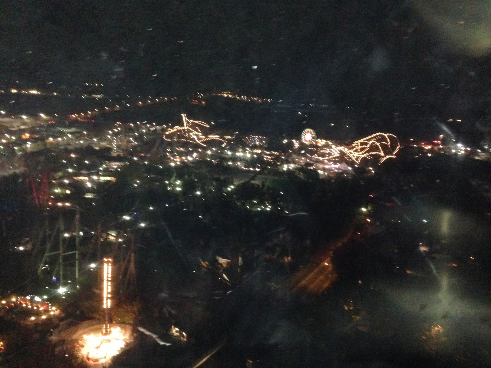 | Hershey Park all light up at night. |